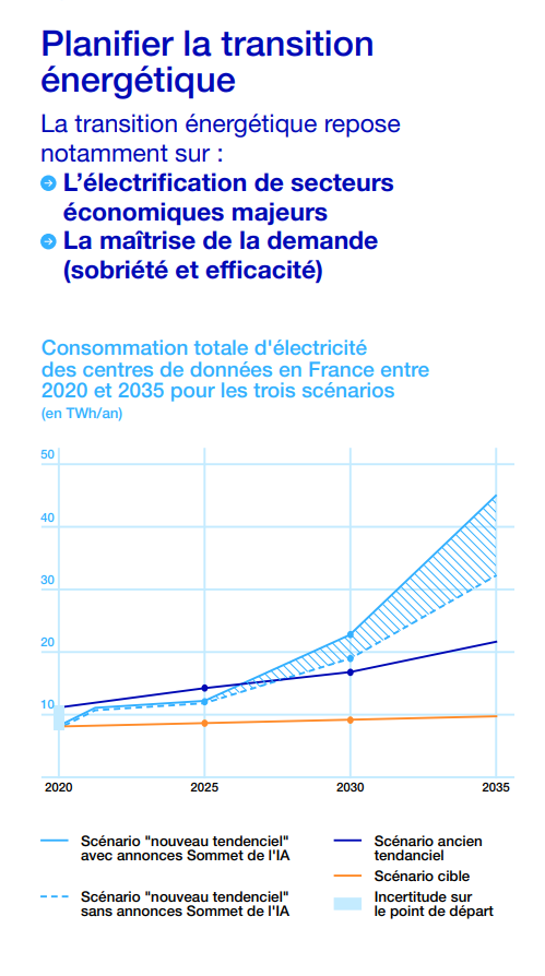 Au-delà des terminaux, l’IA a besoin de centres de données pour stocker l’ensemble des données utilisées et répondre à son impressionnante puissance de calcul. En effet, les datacenters contiennent eux aussi des métaux précieux et rares comme le tantale, l’or le cuivre, indispensables pour les composants électroniques. La construction des bâtiments et des systèmes de refroidissement implique béton, acier, plastique et circuits de fluide6. Tous ces matériaux doivent être extraits de terre et raffinés. Ces productions, détruisent des sols et dégradent des écosystèmes. sans même évoquer les conditions sociales des populations locales directement impactées par les activités minières7. De plus, pour refroidir les datacenters il est nécessaire de prélever de grandes quantités d’eau. Ainsi Microsoft, principal actionnaire de Open AI qui a développé Chat GPT, a vu sa consommation d’eau grimper de 22% en 2023, conséquence directe du succès de Chat GPT. Il a été estimé qu’un demi litre d’eau s’évapore toutes les 10 à 50 requêtes8. Pas si dématérialisée que ça donc ! L’IA et son adoption massive, qui s’inscrit dans la numérisation des usages, accélère l’utilisation de matériaux et de ressources critiques. Une forte consommation énergétiqueL’IA a donc besoin de datacenters particulièrement énergivores en électricité. La Commission Européenne estime à déjà 3% la part de consommation d’électricité en Europe liée aux datacenters, chiffre qui peut monter jusqu’à 21% dans le cas de l’Irlande. En France, la consommation annuelle d’électricité des datacenters est estimée à 10 TWh en 2023, sur 413 TWh consommés la même année. Selon les projections du Réseau de Transport d’Électricité (RTE), cette consommation pourrait atteindre 28 TWh par an d’ici 2035. Si l’ensemble des projets annoncés se concrétise et que les centres de données utilisent pleinement leur capacité, la consommation pourrait même s’élever jusqu’à 80 TWh par an, soit environ 15 % de la production nucléaire actuelle française9. A titre de comparaison, une requête sur Chat GPT peut consommer jusqu’à 10 fois plus d’énergie qu’une recherche sur un moteur de recherche classique. Ainsi, si l’on venait à substituer les moteurs de recherche par l’IA, cela augmenterait de 10 TWh d’électricité par an10. Au niveau mondial, la consommation électrique des datacenters dans le monde en 2022 a déjà atteint 460 TWh, soit pratiquement la consommation annuelle d’électricité de toute la France. Dès l’année 2030, des prévisions estiment une consommation électrique des datacenters de l’ordre de 1200 à 1400 TWh soit un triplement en 8 ans11. Pour faire face à cette consommation d’électricité, il faut aussi prendre en compte l’impact de l’IA et des centres de données sur les réseaux électriques, c’est-à-dire l’ensemble des infrastructures de production et de transport d’électricité. En effet, les charges de travail de l’IA, en particulier l’entraînement des modèles d’apprentissage, génèrent des variations rapides et importantes de la demande énergétique, ce qui affecte le système électrique. L’expansion rapide des centres de données pour servir l’IA, exerce une forte pression sur les réseaux électriques, et augmente le risque de pannes de courant à grande échelle et dégrade les infrastructures12. Par ailleurs, l’évolution du numérique, dont l’IA, est trop rapide pour permettre la mise à niveau des infrastructures électriques13 au même rythme. Une empreinte carbone élevéeL’impact carbone de l’IA est difficile à mesurer puisque cette dernière dépend de plusieurs paramètres, comme la durée de l’entraînement des modèles, le matériel utilisé. A ce jour, encore peu de données sont disponibles sur leurs consommations réelles. En revanche, des approches plus ciblées montrent des impacts très lourds, comme aux États-Unis où les centres de données ont généré 105 Mt éq.CO2 en 2023 (2.2% des émissions américaines), dont une part croissante liée à l’IA14. Le numérique pèse aujourd’hui 4,4% des émissions de CO2 française, en augmentation de près de 7% par an, c’est déjà plus important que le secteur aérien15! Il est clair que cette augmentation exponentielle ne va pas s’infléchir, et au contraire augmenter suite au développement massif de l’IA. Ses émissions sont d’origines multiples, comme la construction des datacenters, des terminaux, l’extraction des ressources, le transport des composants… Une part importante des émissions de CO2 du numérique est déterminée par l’utilisation massive d’électricité des datacenters dédiés à l’IA alors que le mix électrique mondial est encore très carboné, avec 60% de la production d’origine fossile (dont 35% pour le charbon)14. L’empreinte carbone de l’IA et des datacenters est donc très importante, puisque l’électricité utilisée est très émettrice de CO2. Une augmentation très forte de la demande d’électricité en peu de temps pour développer l’IA va remettre en cause la fermeture de centrales électriques thermiques, afin de répondre à une demande d’électricité très importante. Cela peut donc remettre en cause les objectifs de verdissement du mix électrique mondial. C’est exactement ce que vient d’annoncer le gouvernement américain en relançant la production de charbon161718. Ce qu’en pensent les Shifters : un outil qui peut être positif sur quelques usages très spécifiques… mais très néfaste dans la grande majorité des cas.L’IA comporte certaines applications intéressantes dans le domaine écologique et environnemental, puisqu’elle est utilisée pour de la prédiction météorologique, la gestion des déchets et le recyclage, l’optimisation de tournées de camions, la surveillance du changement climatique, ains